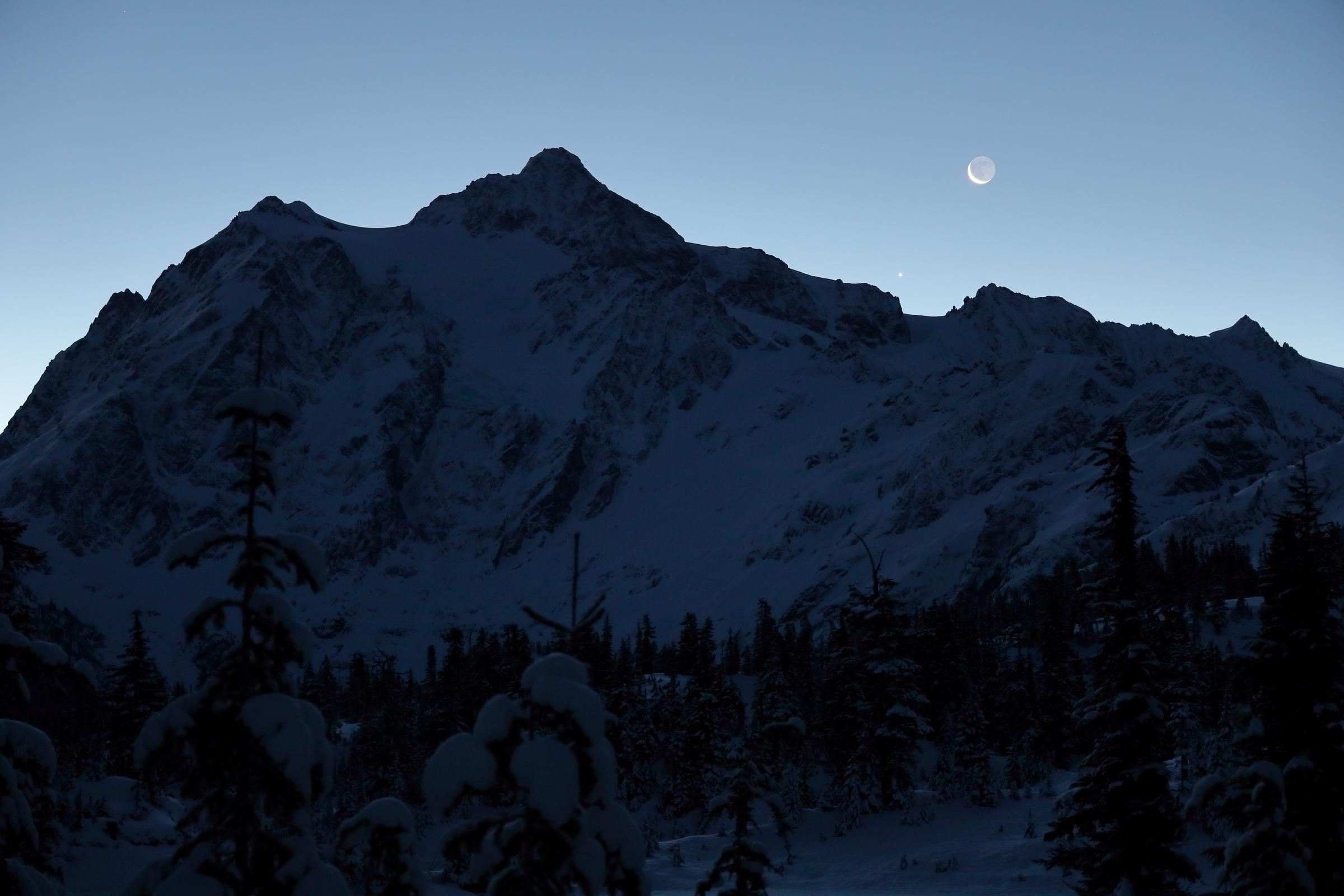 Reply to comment by PiningForTheFnords in Moonrise over Mt. Shuksan (re-editing old photos, trying something different. Is it too dark?) by Nixx_Mazda