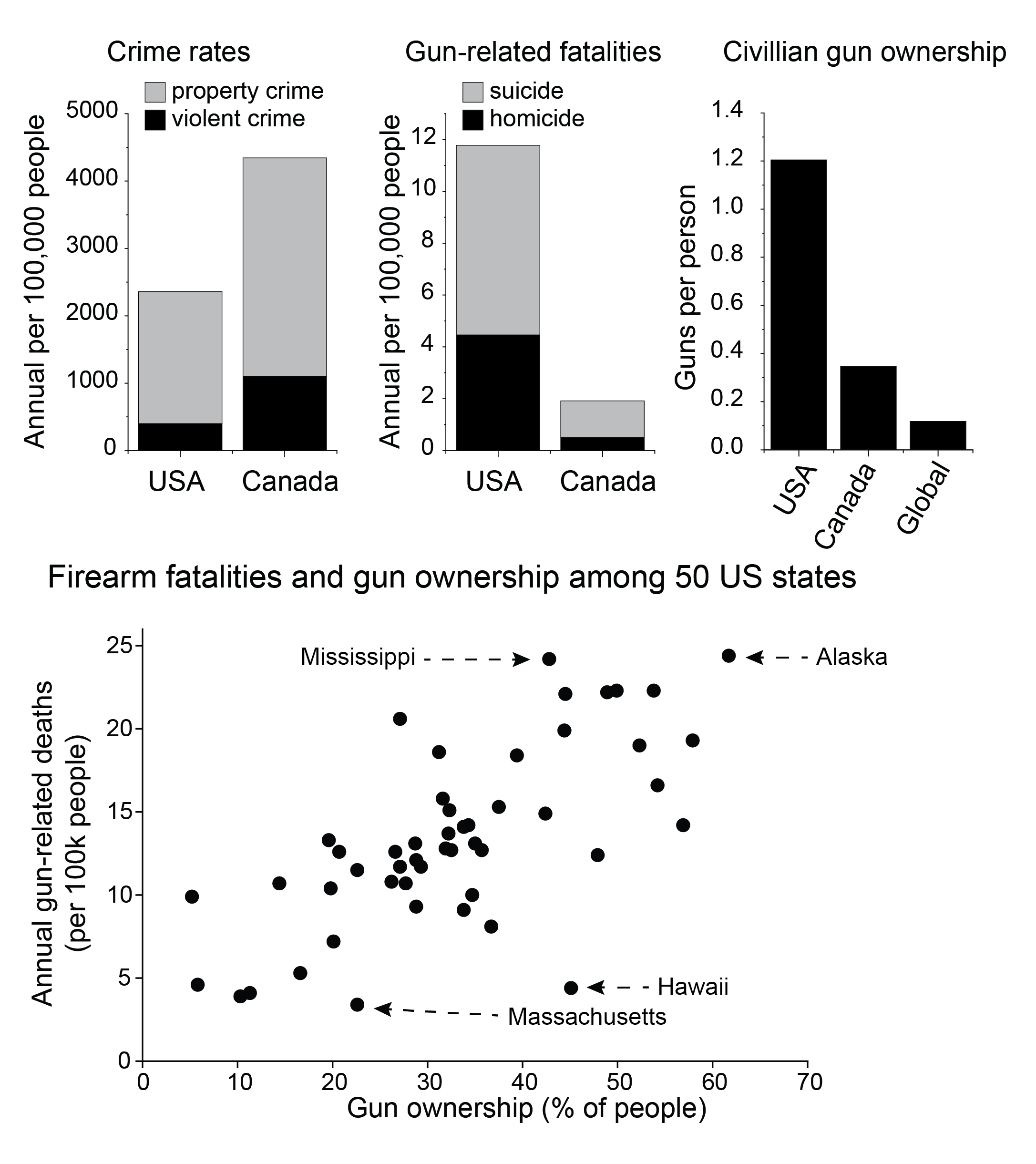 Full discussion of the data can be found at https://pencer.substack.com/p/guns-in-the-usa-and-canada