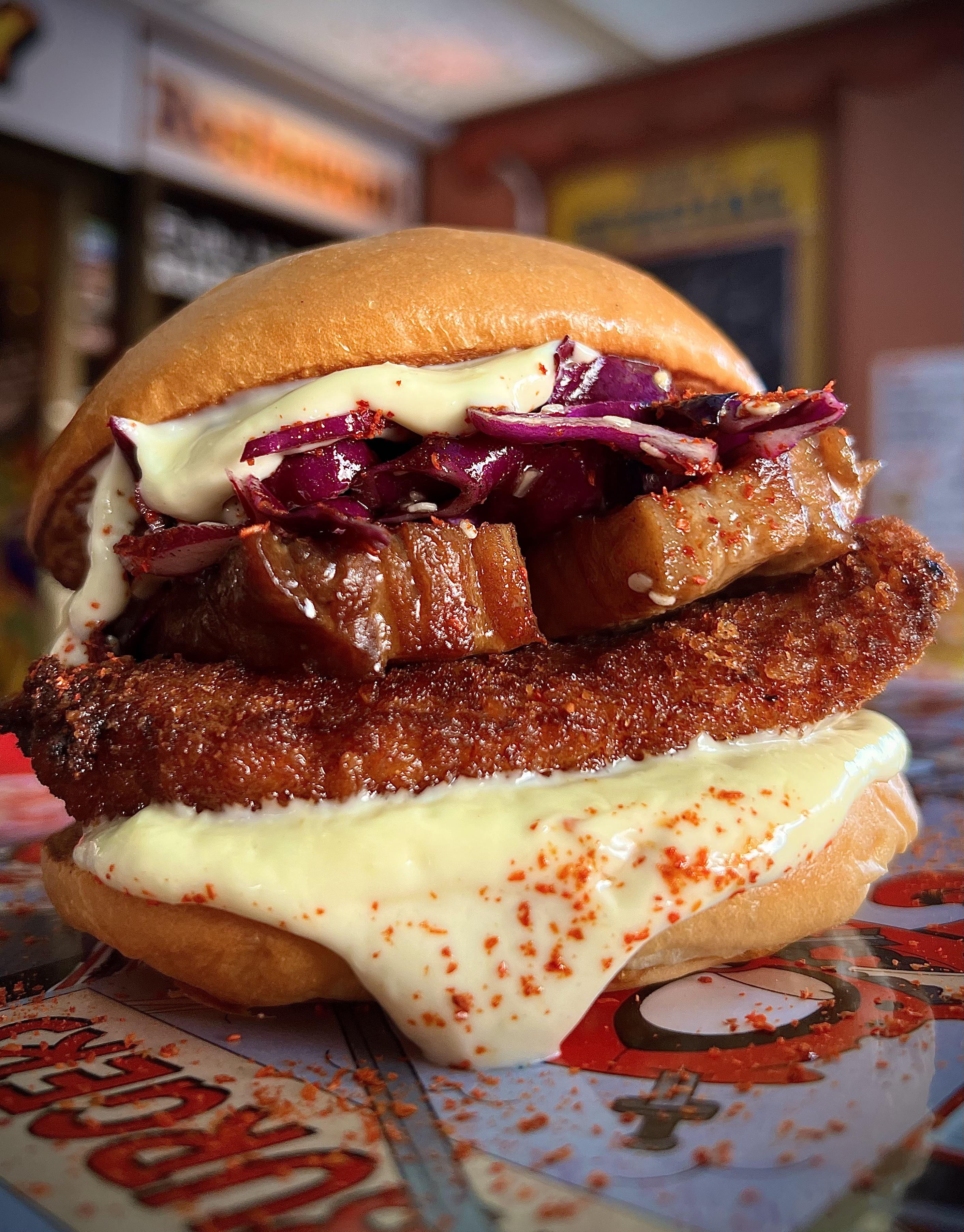 [PRO/CHEF] Chicken Katsu Sandwich w/ Kakuni (Braised Pork Belly), Wasabi Mayo, Togarashi Spices, Roasted Sesame, Purple Slaw Submitted by ken_bagan t3_ydwqkb on October 26, 2022 at 12:20 PM in food No comments 5