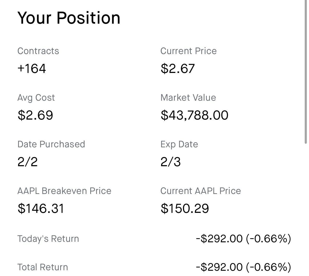 44k AAPL Short Submitted by tenfthigher t3_10rwl5e on February 2, 2023 at 6:15 PM in wallstreetbets No comments 3